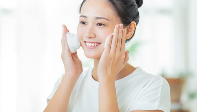 皮脂やメイク汚れなどをきちんと洗い落とすクレンジング・洗顔を行いましょう。その際やりすぎは注意です!皮膚に刺激を与えないよう優しく洗顔しましょう。